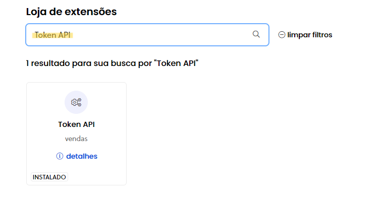 Passo 2 - Dentro da Loja de Extensões, busque por "Token API". Vamos instalar essa extensão para que o Tiny nos providencie uma chave de acesso. Clique em Instalar.